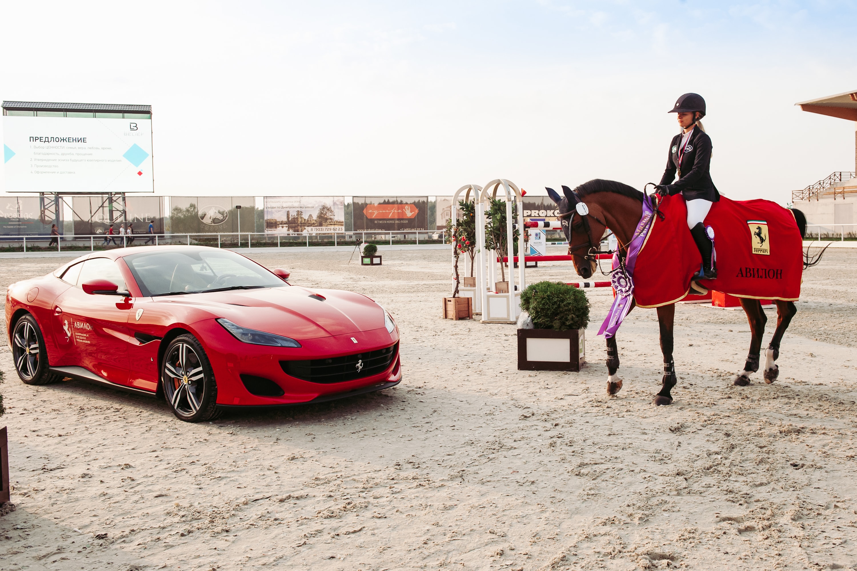 В минувший уик-энд загородный комплекс Maxima Park, расположенный в Дмитровском районе, принимал на своих площадках масштабное мероприятие при поддержке Ferrari Авилон. Одновременно на крупнейшей конноспортивной базе России прошла международная выставка лошадей и турнир по конкуру. На несколько дней все гости Мaxima Park полностью погрузились в азартный мир конного спорта.