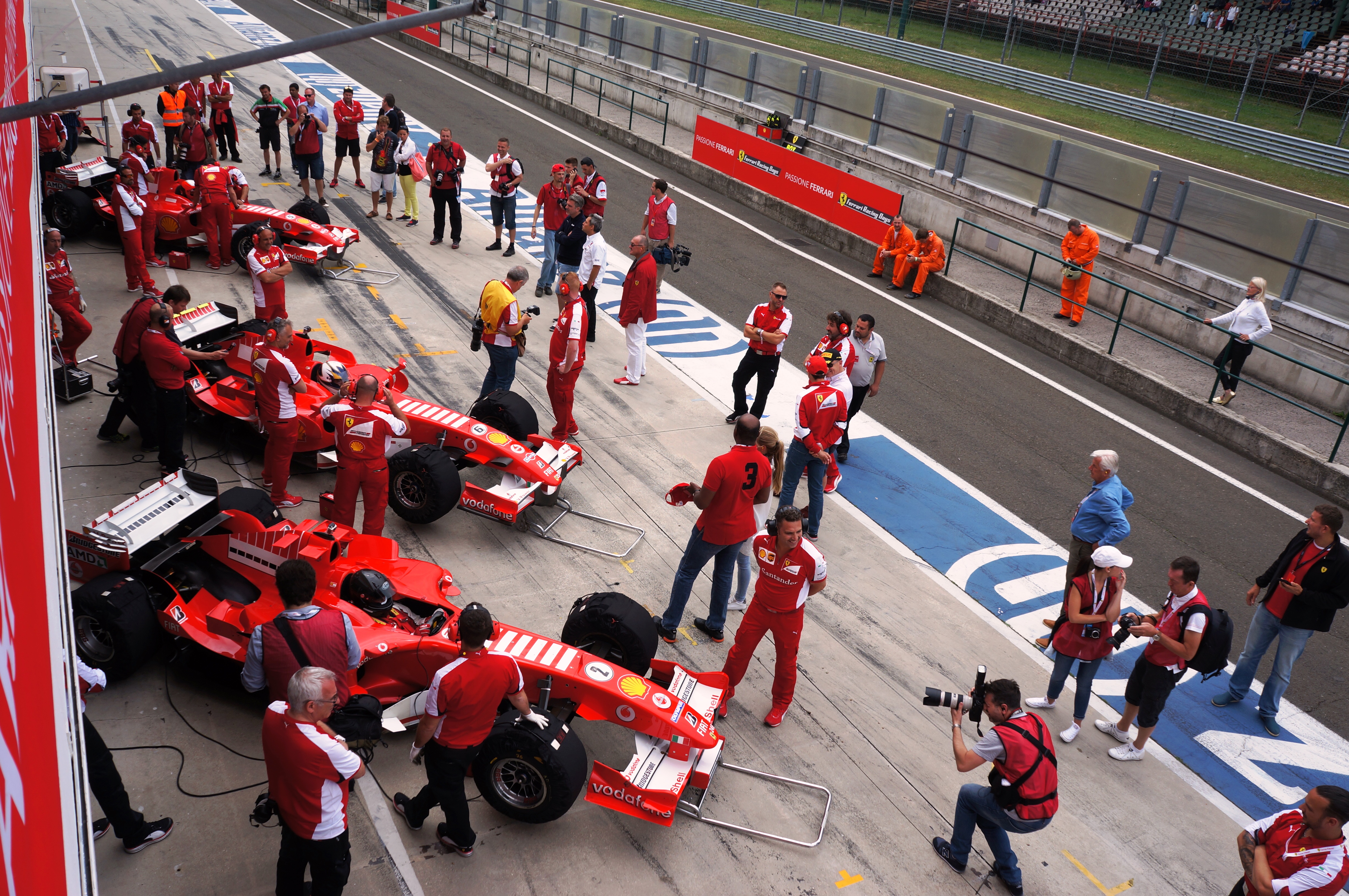 Почувствуй любовь. По окончании показательного выступления зрители оказали Феттелю восторженный прием. В ответ он перепрыгнул ограждения и направился к благодарной публике. "Мой первый опыт гонщика Ferrari не в рамках состязаний Гран-при просто потрясающий," — сказал Себ. "Я почувствовал любовь всех болельщиков, когда они окружили меня, и я счастлив, что смог порадовать их своим адреналиновым шоу".